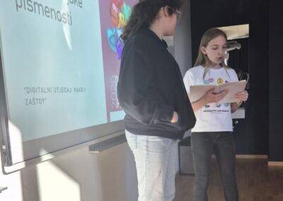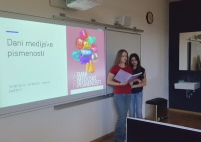U sklopu obilježavanja Dana medijske pismenosti, s učenicima 5. i 6. razreda, na satima informatike, provedena je radionica pod nazivom „Digitalni utjecaj: kako i zašto?”. Cilj radionice bio je osvijestiti učenike o ulozi medija i društvenih mreža u njihovoj svakodnevici, s posebnim naglaskom na fenomen influencera i njihov utjecaj na djecu i mlade. Kroz interaktivne aktivnosti učenici su promišljali o tome na što influenceri usmjeravaju pažnju u svojim objavama, što i na koji način promoviraju te kako prepoznati prikriveno oglašavanje. Poseban naglasak stavljen je na razvoj kritičkog mišljenja – kako procijeniti vjerodostojnost sadržaja i odlučiti možemo li nečemu vjerovati ili ne. U završnom dijelu radionice učenici su se i sami okušali u ulozi influencera. Osmislili su i snimili vlastite objave koje su predstavili razredu, a njihovi su ih vršnjaci analizirali i pokušali procijeniti jesu li sadržaji istiniti ili lažni. Ova aktivnost potaknula je kreativnost, ali i dodatno osnažila svijest o važnosti odgovornog stvaranja i konzumiranja digitalnih sadržaja. Radionica je protekla u dinamičnoj i poticajnoj atmosferi, a učenici su pokazali velik interes i zrelost u promišljanju o temama koje su danas neizostavan dio njihovog odrastanja.
