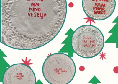 Tijekom prva tri tjedna mjeseca prosinca učenici su sudjelovali u aktivnostima koje su osmislile učiteljice 2.a razreda, a za svaku provedenu aktivnost obojili su po jednu božićnu zastavicu na koju su upisali učinjeno dobro djelo.