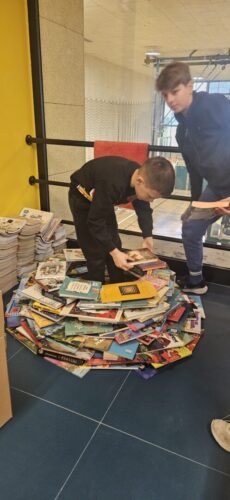 Uoči nadolazećih blagdana učenici 6.a su, zajedno s knjižničarkom i razrednicom, pokazali svoju kreativnost i ljubav prema čitanju izradivši poseban božićni bor – potpuno sastavljen od knjiga. Uz puno truda, mašte i timskog rada nastalo je originalno blagdansko drvce koje krasi prostor školske knjižnice i stvara toplu, svečanu atmosferu. Ovaj mali projekt podsjetio je sve koliko knjige mogu biti inspirativne, ne samo kao izvor znanja, već i kao poticaj za stvaranje nečeg lijepog i zajedničkog.